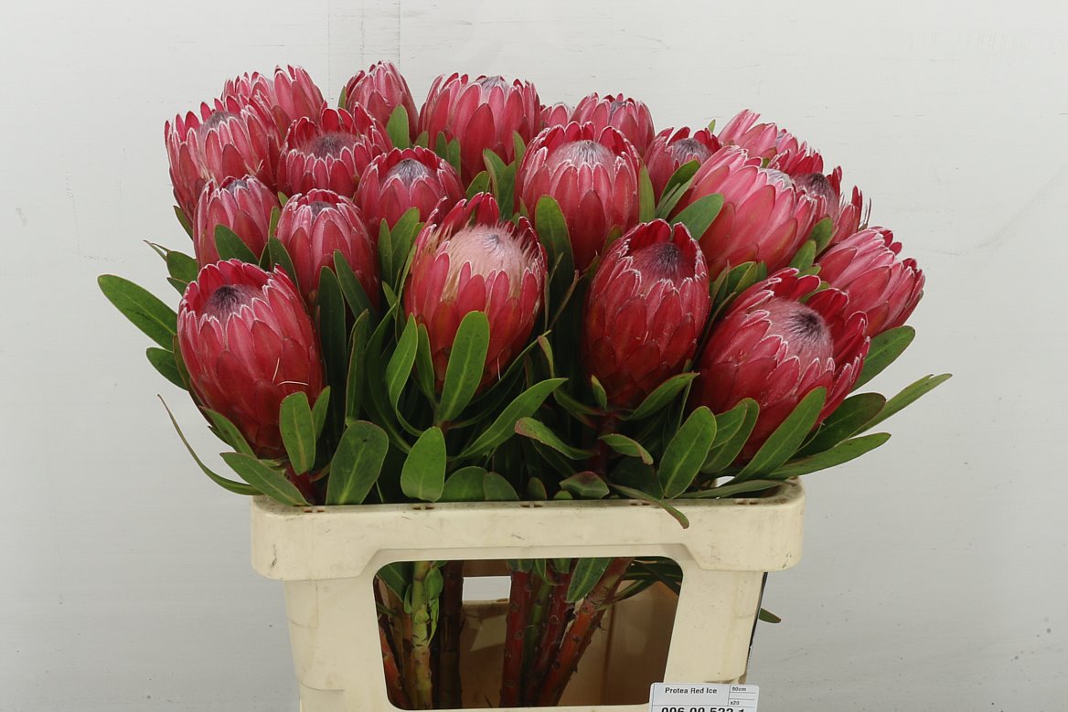 Colli 0 Lengte 60 Inhoud 20 Rijpheid 2-3 Aantal 5 Bloemkleur rood Fustcode 996 Land v herkomst Bosinh. 5 Kwaliteit A1 Kweker Coloriginz -,--≥ 5 stks -,--Protea Red Ice