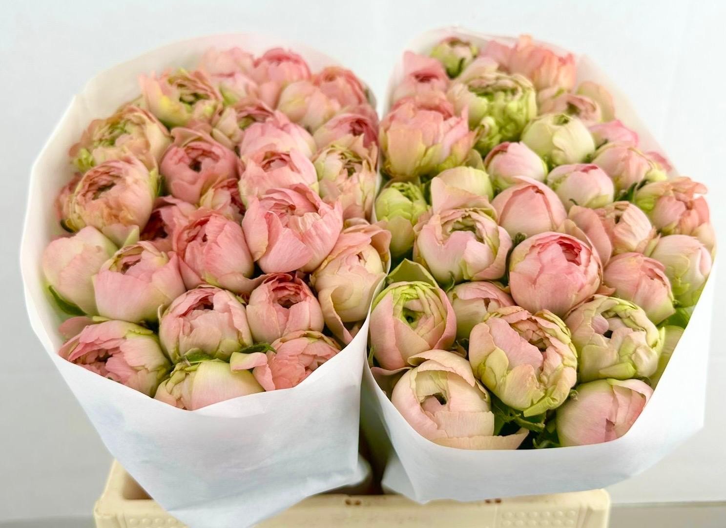 Colli 3 Lengte 45 Inhoud 60 Rijpheid 2-3 Aantal 180 Bloemkleur zalm Fustcode 566 Land v herkomst Bosinh. 10 Kwaliteit A1 -,--≥ 60 stks -,--Ranunculus Clooney Gran Pastel